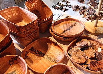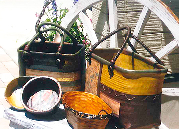 1あけび工房 きらら木工雑貨系 <福島県>福島県会津地方で採取した山ぶどうの樹皮を使って様々な作品を製作しています。又、竹かご等に和紙を貼った一閑張りを製作しています。 |