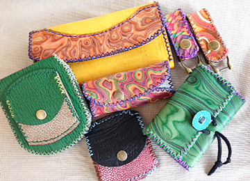 19 denrico革細工系 <兵庫県小野市>牛、鹿、豚、オーストリッチ、サメ、エイ、印伝など多種多色の革を40色の糸で手縫いした革小物、バッグ、靴などを制作。 |