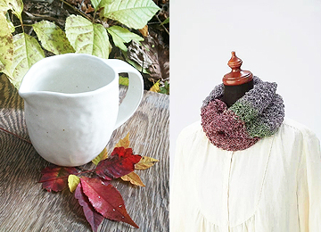 2 michi+陶器・アクセサリー雑貨系 <新潟県>新潟県で“ニット小物”と“うつわ”の両方を作っています。 ニットはアラン模様編みを中心に『ナチュラルでキレイな色使い』を心掛