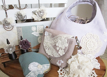 69 タイムレスアクセサリー雑貨系 <奥州市>ヴィンテージ生地やリネン、タティングレースなどを使った アクセサリー、布小物、くるみボタンなどを作っています。 |
