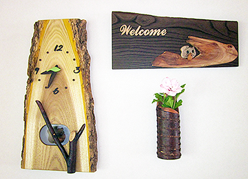 59 きこり工房木工系 <奥州市>全部、卓上糸のこを使った作品です、木の温もりを感じてください。 |
