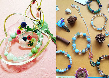 65 はる色の手仕事アクセサリー雑貨系 <秋田県横手市>カラーセラピー、アロマセラピーの資格を持つ2人の制作ユニットです。天然石ブレスレット、ドライフラワー雑貨、レジン小物など作品数は多くはありませんが |
