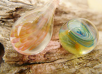75 がらす・とんぼ玉工房 つきのきガラス細工系 <秋田県大仙市>とんぼ玉を作り、アクセサリーに仕立てています。 http://www.tonbodama-tsukinoki.com