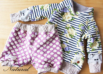 74 Natural+布雑貨系 <秋田県横手市>ヘアアクセサリーや、ほっこりする消しゴムはんこ、お洋服などを制作しています。ニット生地で作る子供服はどれも1点ものばかり! |