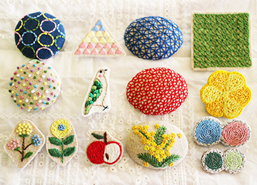 3 手刺繍雑貨chai&stroll布裁縫系 <仙台市> リネンやコットンの布に色とりどりの手刺繍をほどこしてアクセサリーやポーチ、がま口を作っています。
