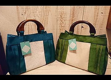 39 畳ヘリバッグkuu布裁縫系 <山形県>畳の縁を使って、バッグや小物を作っています。これが畳の縁?と思うほど、カラフルで可愛い縁がたくさんあります。 ameblo.jp/kuuminn39 |