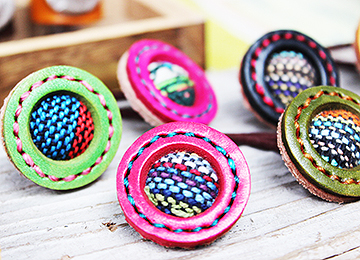 イニシャル柄などのくるみボタン1は100種類以上あり、小物のカスタマイズするのに人気です。