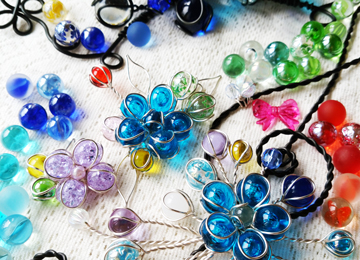 18- clover / クローバー花巻市 出店ジャンル: アクセサリー雑貨 参加料金 500円~1000円/1作品 所要時間 20分程度 対象年齢 幼児~大人 盛岡発祥のビー玉をワイヤーでホールドして作品を創る『マーブルアート』です。 |