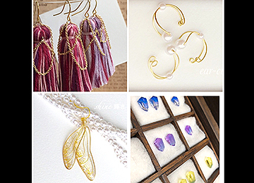 12 junkアクセサリー系 <奥州市>レジンでキラキラと輝く鉱石型のブローチ、ピアス、エンブレム等を作っております。 また、天然石や日本の手漉き和紙を使ったアクセサリーも手掛けております。 全国の和紙はもちろん、岩手の職人さんが作った岩手の手漉き和紙を使用したアクセサリーも作っております。 |