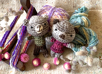 32 くまかもや雑貨系 <花巻市>くまとかもが、手紡ぎ、手染めの綿や羊毛であみぐるみや雑貨を作っています 手紡ぎ糸ならではのほっこりするあみぐるみがお待ちしています 既製品とは手触り風合いが違いますので、ぜひお手に取ってご覧ください。 |