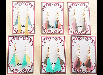 プラ板を使ったピアスやイヤリングは見た目の色使いと付け心地の軽さが人気です。
