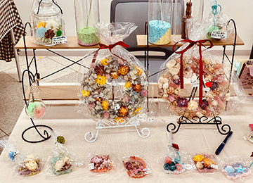 46 HUKU*SUZUアクセサリー系 <花巻市>こんにちは⭐︎HUKU*SUZUです。 本物のお花を使ったアクセサリーや、ハーバリウムを作っています。 また、ハーバリウムのワークショップも行うので世界であなただけの作品を作りませんか? 是非、会場に遊びにいらして下さい!待ってます♡ |