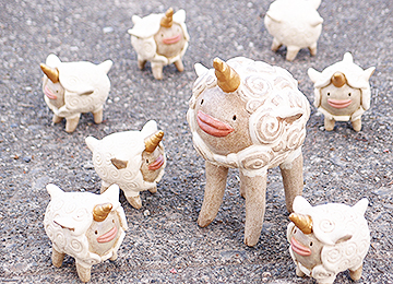 54 くらふと一期舎 土ぼっくりその他雑貨系 <盛岡市>低温で加熱硬化させるオーブン陶土を専門に使用。土の風合がよく出る特徴を活かし他には無い創作人形を作っています。