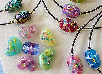 77 あとりえboss&Nonkoガラス細工系 <宮城県>宮城県涌谷町の自宅工房兼ショップにて、夫婦でガラス工芸のとんぼ玉を中心に制作、販売、体験制作、教室などをしています。