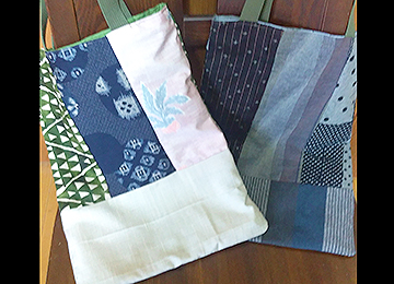70 デコの家裁縫系 <一関市>ハギレを並べてカバンを作り数年が経ちます。着物などの古布をはじめお気にいりの布を集め、それぞれの布の風合いに魅了されています! |