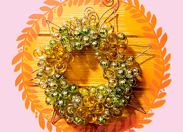 マーブルアート。ワイヤーとビー玉の、きらきらアート作品。手編み帽子。リフ編みベレー帽、夏用のコットン糸で編んでいます。とんがり帽子、赤ちゃんサイズから大人サイズまであります。手作り小物。赤ちゃんスタイ、子供用スモック、袋物3点セット、その他布小物。 |