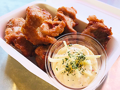 岩手県産米粉、南部小麦使用のサクッとした衣です。おふくろの味伝承のからあげです。 選べるソース数種類ご用意。 味変でお楽しみください。フィッシュアンドチップスなどもございます。 是非ご賞味ください。お兄ちゃんたちイナセだな!!おなしゃす!!! |