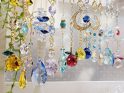クリスタルガラスや天然石を使ったサンキャッチャーやアクセサリーを使っています。 プレミアムな輝きと特別感をお楽しみいただけます。 あなただけのお気に入りの1点を探しにお越しいただけたらとても嬉しいです。 |