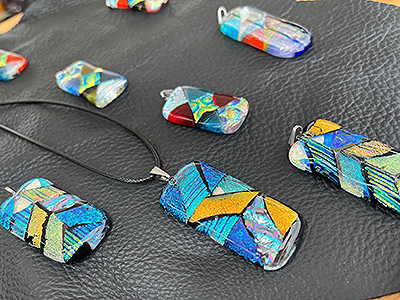 キラキラカラフルなガラスペンダントアクセサリーをメインに立体的で可愛いステンドグラスをオリジナルで制作しています。 ペンダントは洋服の色で見え方が変わるので皆様が驚かれ喜んで頂いております。 ステンドグラスはカラフルなガラスを使い置型と吊るし型も個性あふれるデザインで作ってます。