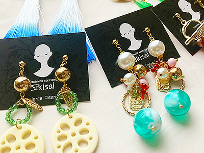 全てデザインの違う一点物のアクセサリーですので、手のとったその作品が世界に一つしかない貴方だけの『色』になります。 ぜひたくさんの作品の中から自分だけのお気に入りを探しに来てくださいね。 |