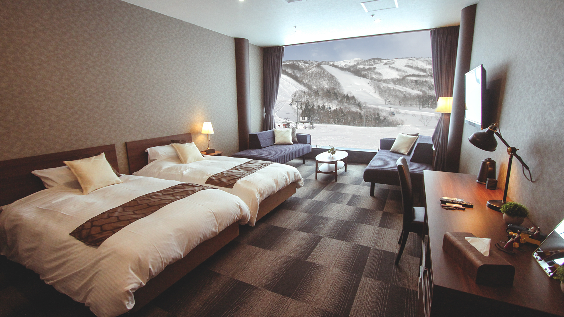 スキー場内3種類の宿泊施設で、雪・風・眺めはもちろん、「温」を感じる快適な滞在を。